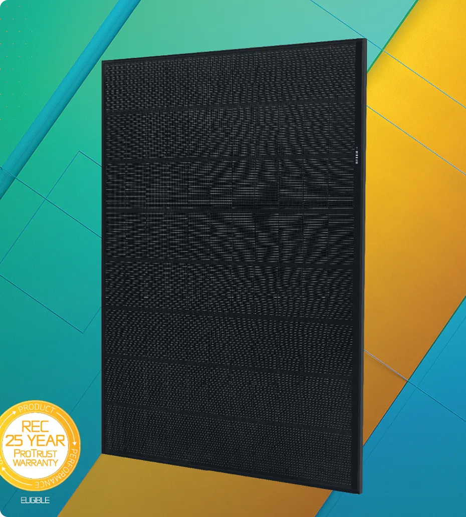 REC’s most powerful residential solar panel, the REC Alpha Pure-RX hits the sweet spot between high power and practical handling, in an elegant full-black design. Reaching 470 W in a compact form factor, it boasts an impressive power density of 226 W/m2, with 22.6% panel efficiency.